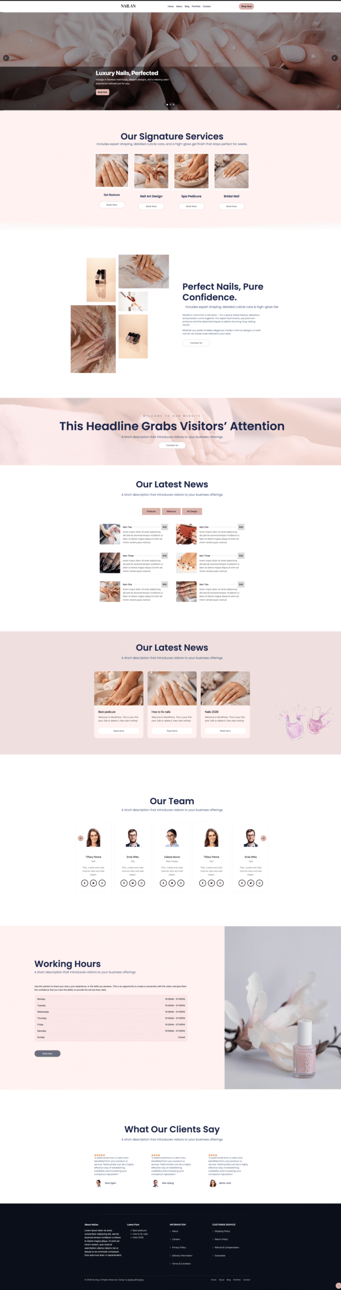 Nailan Pro is a premium and fully responsive Nail Salon & Beauty WordPress Theme designed for nail studios, beauty salons, spas, and cosmetic businesses. It works perfectly for showcasing manicure and pedicure services, nail art, beauty treatments, pricing packages, and appointment information. With Nailan Pro, you can build a professional and elegant beauty website quickly and easily.